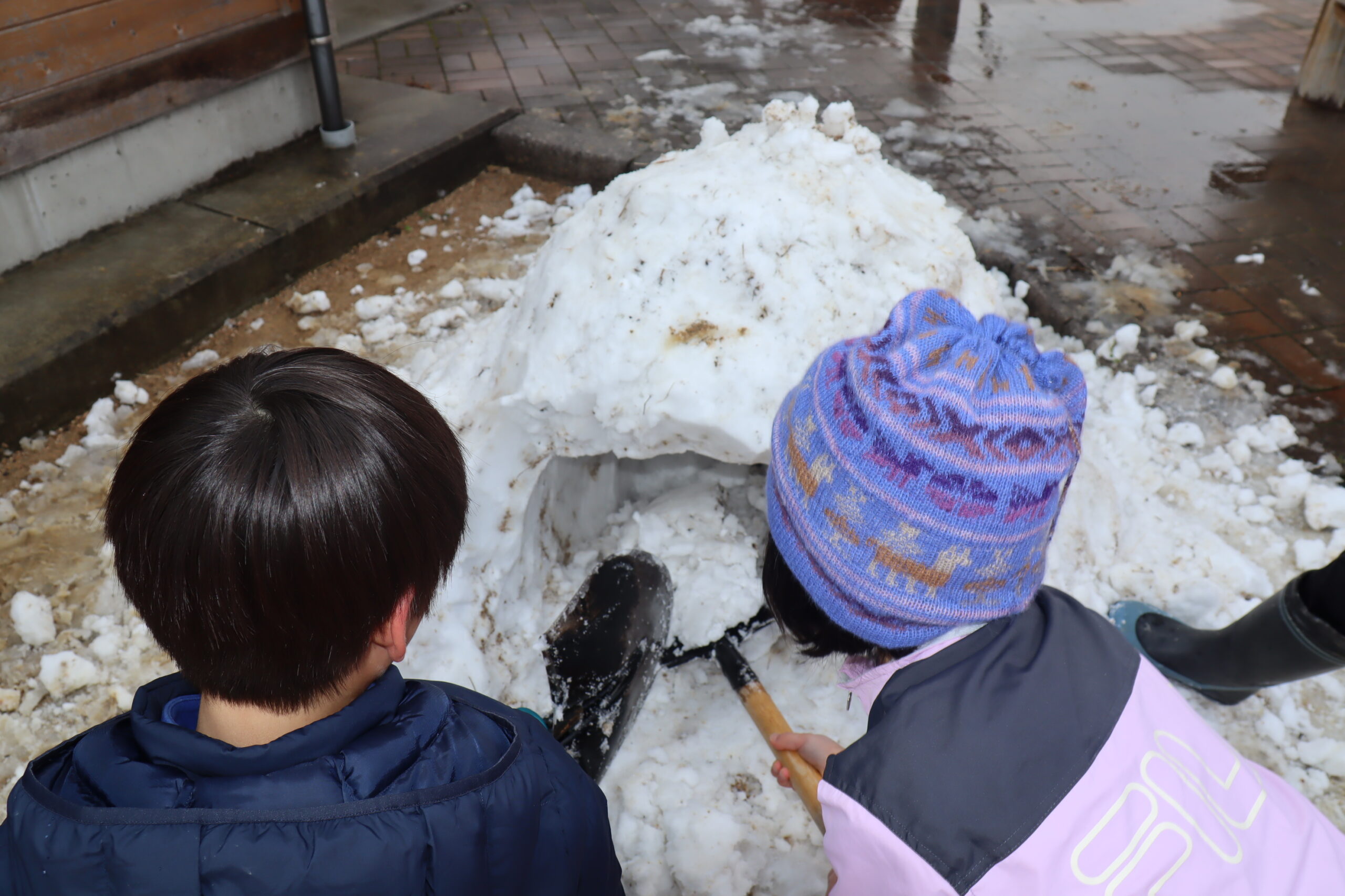 かまくら作りに慣れている子の指示のもと、雪を集めてくる子、穴を掘り進める子などに分かれて作業をしました。